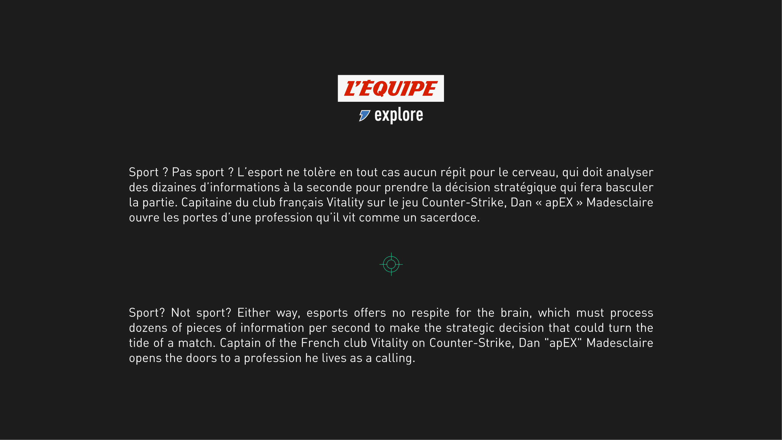 L'Équipe is France's leading daily sports newspaper and one of the most influential sports media in Europe, covering all major sports events and leagues. L'Équipe explore is the brand's premium long-form content division, dedicated to in-depth sports storytelling through investigative articles, documentaries, and immersive multimedia features.